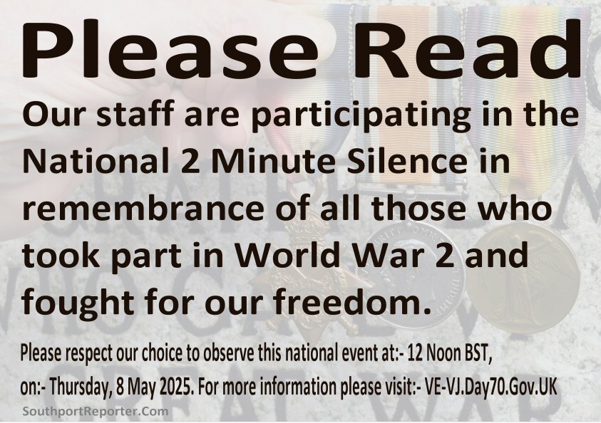We are told that the 2 Minute Silence will be marked by all UK Government Departments, which will also fly the Union Flag at full mast. Other organisations including:- shops and offices, are being encouraged to follow suit if they wish to participate. You don't need to personally know someone who died to take part or be involved in any aspect of the Second World War. The 2 Minute Silence signifies meditation and respect, as well as remembering those who have died. If you want to discover more about the plans to commemorate VE Day and how to get involved, please visit:- VE-VJDay80.GovoUK to find out more. We have made a notice for you to freely download for businesses to explain to customers about your participation in the National 2 Minutes Silence. This poster we have made is FREE to use and distribute.