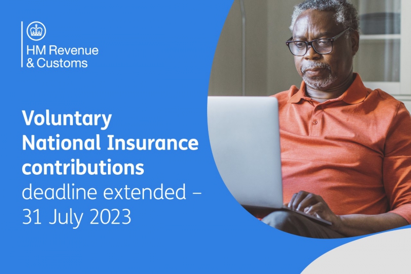 THE Government has extended the voluntary National Insurance deadline to:- 31 July 2023, to give taxpayers more time to fill gaps in their National Insurance record and help increase the amount they receive in State Pension.