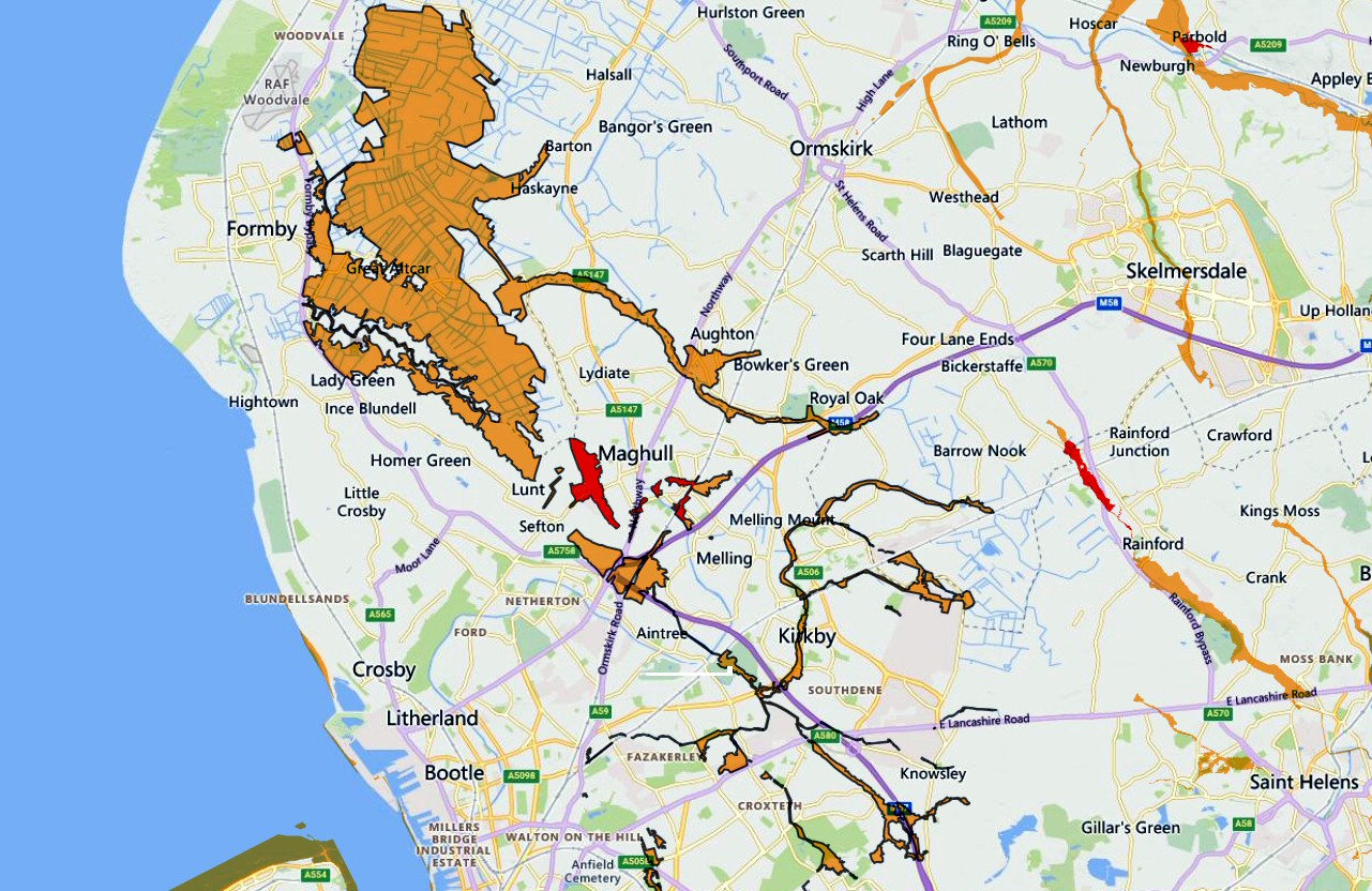 Red Flood warning for:- Fouracres and The Crescent, Maghull - Updated:- 6:16 pm, on:- 1 January 2025